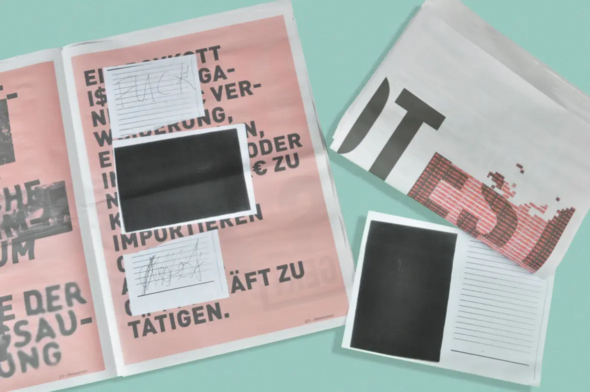 Das Projekt in Form eines Hybrids zwischen Schaubild und Magazin bedient sich an Produkten und Formen welche „Protest“ angenommen und entwickelt hat und stellt so eine Zusammenfassung verschiedener Aussagen her.