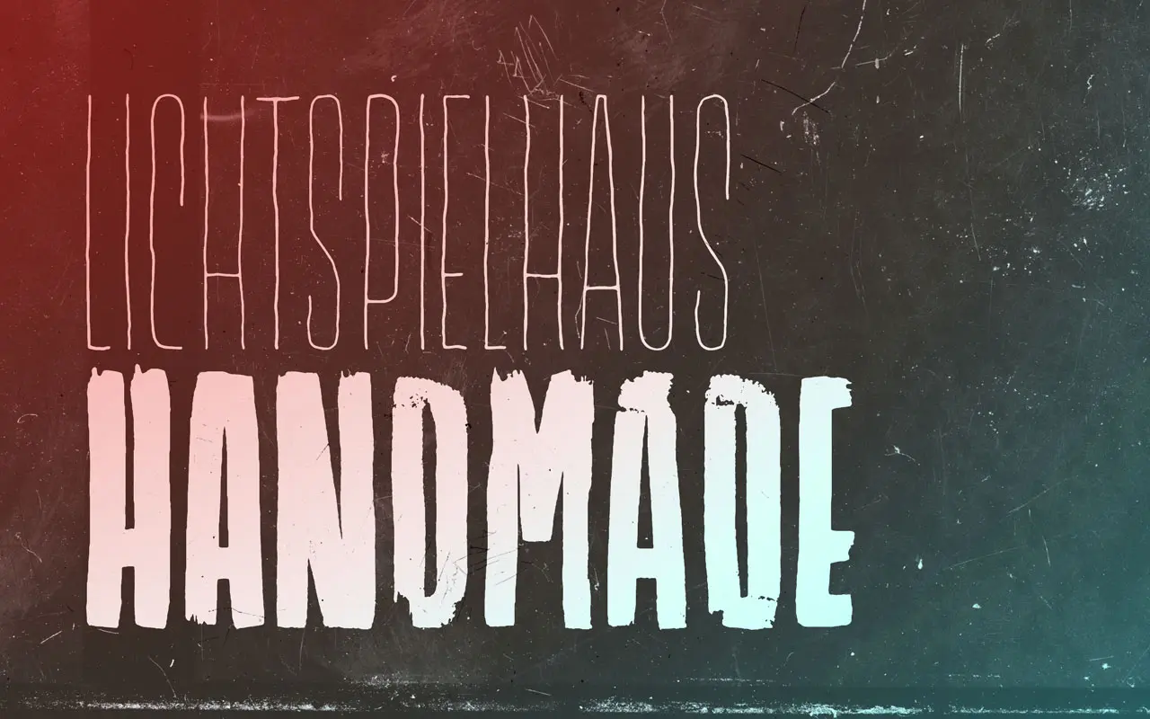 Lichtspielhaus Handmade ist die handgeschriebene Version der Schriftfamilie Lichtspielhaus von Stefan Hübsch, Mitbegründer der Typefoundry Typocalypse. Sie wurde beinflusst von den handbeschrifteten Kino-Fassaden zu Zeiten wo das Wort »digital« noch Science-Fiction war.
