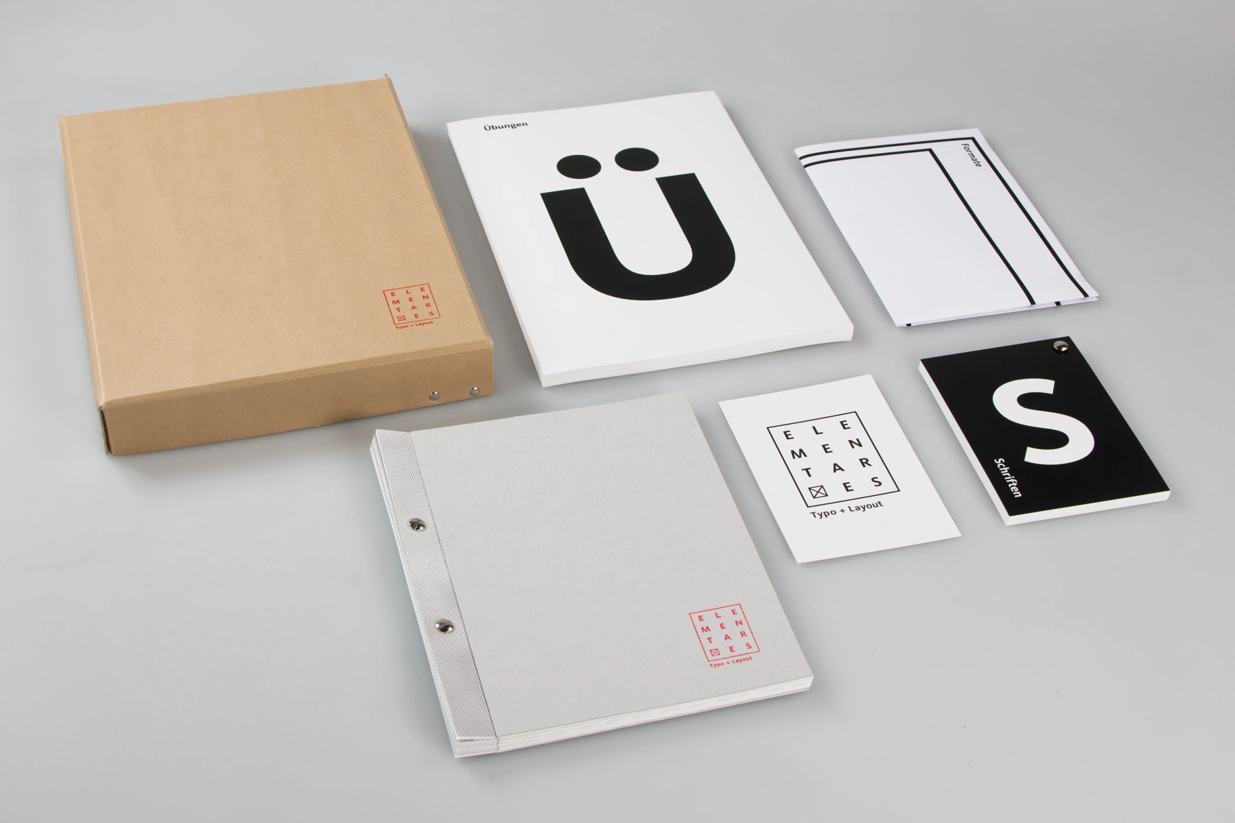 Die theoretischen Inhalte können durch praktische Übungen weiter vertieft werden. Auch sie sind so gestaltet, dass sie leicht in einem Ordner abgeheftet werden können. Ergänzend zeigt das Schriftenheft eine Auswahl an bewährten Schriftarten und ermöglicht einen Vergleich deren formalen Eigenschaften. Das Plakat bildet gängige Formate im Originalmaßstab ab. Alle Elemente sind in einer stabilen Box gesammelt, die mit dem Signet gekennzeichnet ist.