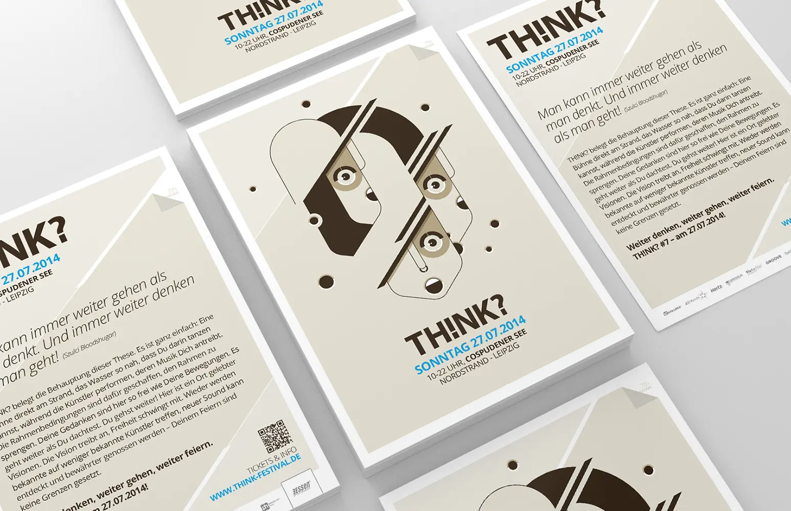 Das Th!nk? Festival gehört zu den größten elektronischen Musikveranstaltungen in Sachsen und zieht einmal im Jahr tausende an den Nordstrand am Cospudener See. 2014 waren wir nun bereits das vierte Mal verantwortlich für das gesamte grafische Erscheinungsbild, die Onlinepräsentation, das Branding sowie das Leitsystem vor Ort.