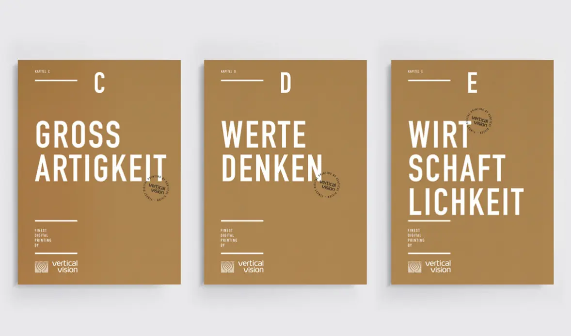 Werte sichtbar machen: Die von Arteficium entwickelte Mitarbeiterfibel von Vertical Vision ist ein 54-seitiges, handliches Büchlein, das in vier Themenkomplexern die Grundwerte des Unternehmens formuliert. Eine Sprache, die komplexe Zusammenhänge auf den Punkt bringt in Verbindung mit plakativer Typografie stimmen die Mitarbeiter auf das Unternehmen ein. Herzlich willkommen bei Vertical Vision /…