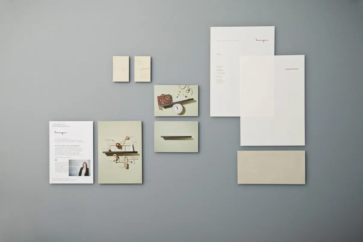 Das Corporate Design von Silke Bell spiegelt die klare Denkweise des Coachs wieder. Ein minimalistisches Monogramm, getragen von einem einfachen schwarzen Balken, ist nicht nur markanter Hingucker auf ihren Printmedien sondern wird auch zum festen Bestandteil des Foto- und Illustrationskonzepts. So wird ein einfaches schwarzes Ikea-Regal zur fotografischen Projektionsfläche für ihre verschiedenen Kompetenzbereiche und gibt Struktur und Halt, trennt Berufliches von Privatem oder verbindet Ökonomie mit Menschlichkeit.