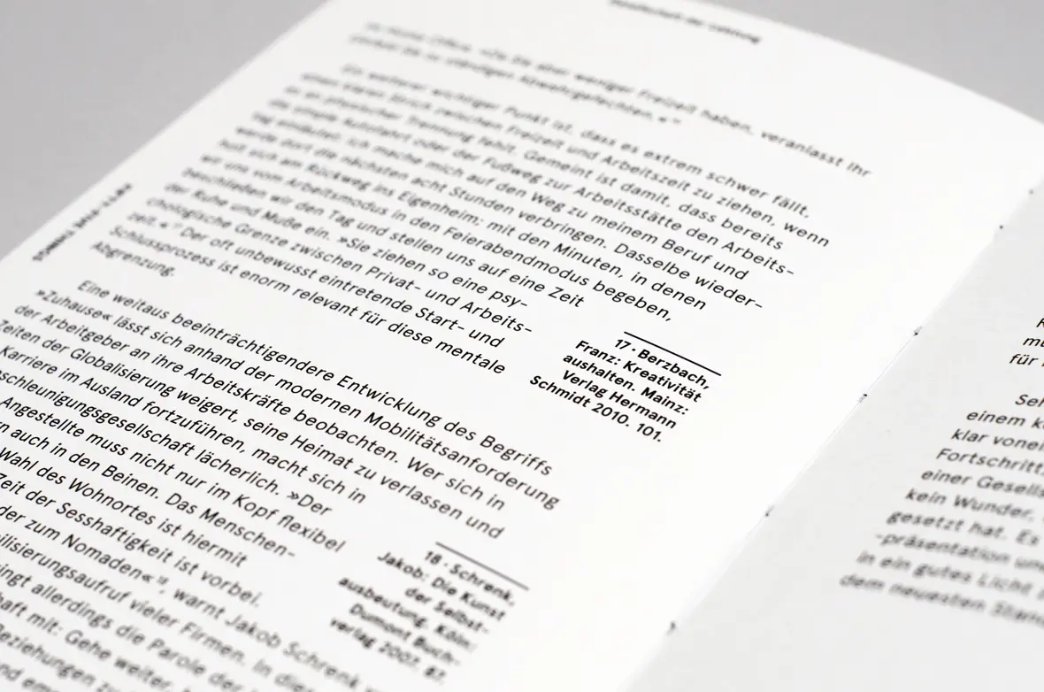 Das Thema »Hochleistungsgesellschaft« war etwas, das mich im Laufe meines Studiums mehr und mehr fasziniert hatte – und frustriert zugleich. Leistungsimperativ und Perfektionswahn schienen so allgegenwärtige Bestandteile des Kreativberufs zu sein, dass ich mich wunderte, wie es unter einem derartigen – oftmals selbst auferlegten – Druck denn überhaupt noch möglich sei, der eigenen Kreativität freien Lauf zu lassen. Ich entschied mich, diese Fragen zum Thema meiner Abschlussarbeit zu machen und dabei zu hinterfragen, was Muße und Entspannung in einem solchen Hochleistungsumfeld für Kreativität und Produktivität bedeuteten.