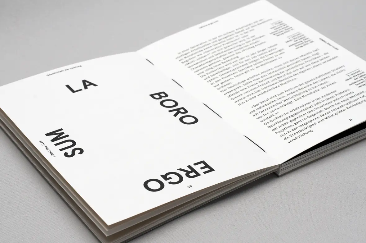 So kam es auch, dass ich erst mit der intensiven Auseinandersetzung mit der Thematik während dieser Zeit mit meinem Projekt mitwuchs – der gesamte Prozess verlief ein wenig nach dem Motto »go with the flow«. Manchmal verlangte es nach einer völligen Loslösung von strikten Normen und Vorgaben; ich nahm die Typographie nicht mehr gar so ernst, begann frei damit zu spielen und zu experimentieren. Dann wiederum hatte ich das Gefühl, dass ein wenig Ruhe und Struktur als Pendant nicht schaden würden – so entstand ein Basis-Grid, und der Großteil meiner Arbeit ist in schwarz und weiß gehalten, weil ich mich mit diesen Farben generell sehr wohl fühle.