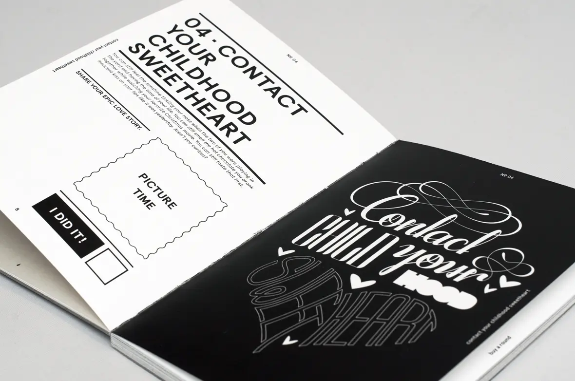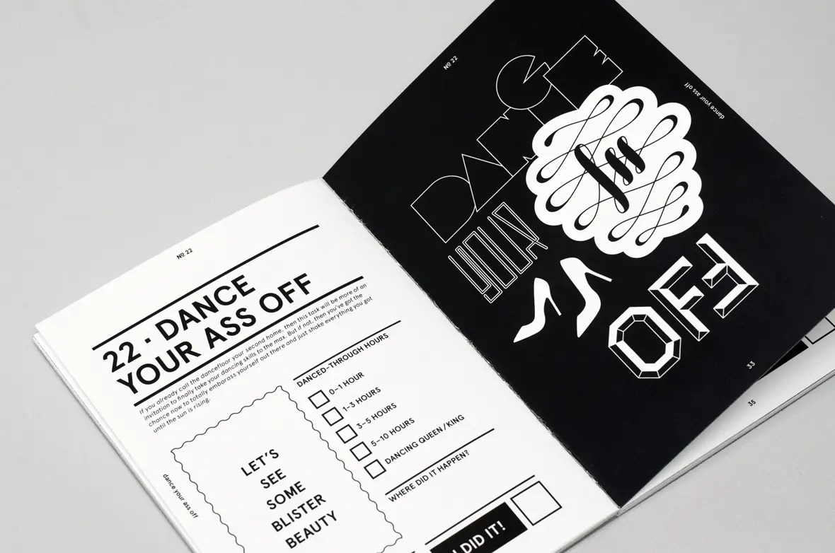Im praktischen Teil meiner Arbeit griff ich genau diese Problematik auf – und gestaltete ein zweites Buch das fünfundfünfzig Dinge vorschlägt, die man tun sollte, bevor man stirbt – »Fifty-Five Things«.