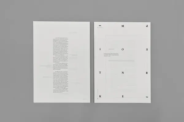 Prokrastination führt unweigerlich zu Zeitdruck und damit zu dem Problem, bestimmte Aufgaben nicht mehr rechtzeitig fertigstellen zu können, sodass – wenn überhaupt – nur noch Zeit für das Nötigste bleibt. Diesen Aspekt greife ich in der Umsetzung meiner Arbeit auf. Bestehend aus ungebundenen Einzelseiten im Standardformat DIN A4, lediglich von einem Gummiband zusammengehalten, »schnell« schwarzweiß gedruckt und mit zahlreichen »Fehlern« gespickt, soll alles den Eindruck vermitteln, die Zeit hätte nicht mehr gereicht, sich intensiver damit auseinanderzusetzen. Aus diesem Grund habe ich auch nur eine Schrift verwendet, nämlich die »Minion Pro« in Anlehnung an die »New York Times«, die in den meisten Programmen als Standardschrift voreingestellt ist. Die grauen Gestaltungselemente deuten Platzhalter an, die aufgrund der fehlenden Zeit leer geblieben sind. Einige Seiten zeigen zwar ein Raster, aber keinen Text, andere sind komplett weiß.