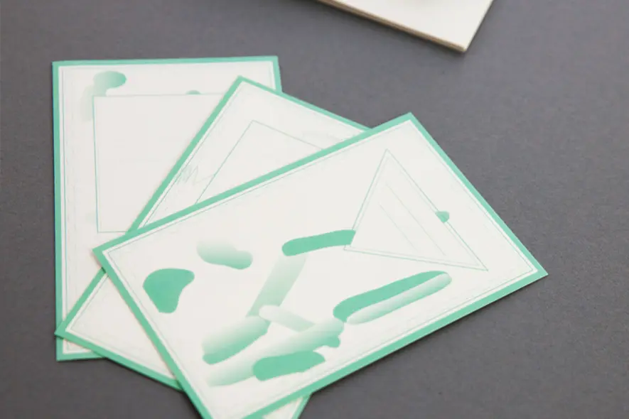 Als Weihnachtsgeschenk haben wir 2013 ein Set erstellt, das die Verbindung abstrakter Konzepte und konkreter Materialien, die in unserer Arbeit zentral ist, für unsere Kunden und Freunde am Beispiel eines Notizheftes greifbar macht.