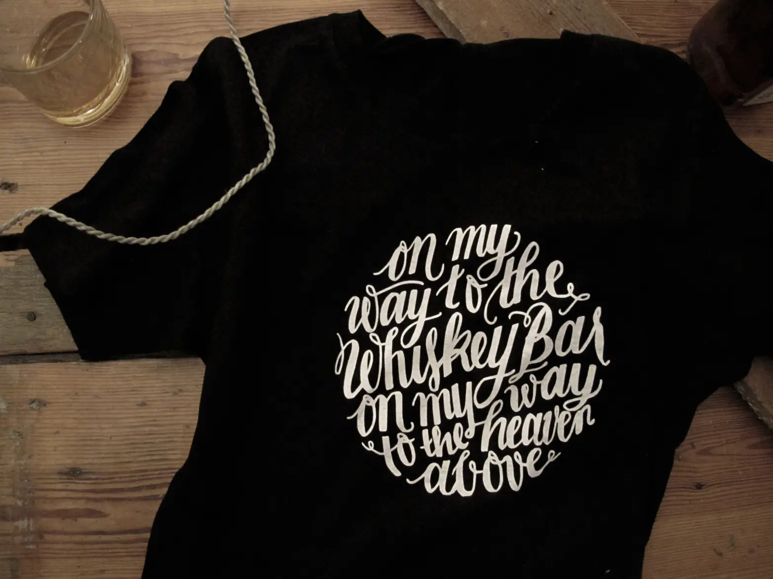 Zusätzlich zur EP wurden ein T-Shirt und Beutel mit einem Zitat aus »Whiskey Bar« gestaltet.