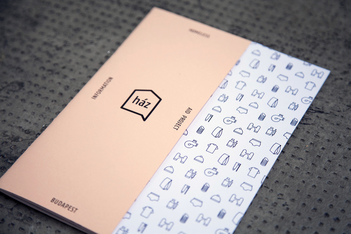 Das Projekt “Ház” (= Haus) entstand während eines Auslandssemesters an der Moholy-Nagy Universität für Kunst und Design in Budapest. Die zwei Studentinnen für Sozial- und Kommunikationsdesign Lina-Trixi Feller (UdK Berlin) und Miriam Schmalen (FH Aachen) haben sich mit der Konzeption und Gestaltung eines Hilfsprojektes für die Obdachlosen Budapests befasst. Auf der Basis von lokalen und Online-Recherchen sowie persönlicher Gespräche entwickelten sie ein umfangreiches Konzept, welches in eine geschlossene Corporate Identity eingebettet wurde. Die Studentinnen veranschaulichten in einer Low-Budget-Informationsbroschüre ansprechend und übersichtlich die wichtigsten Informationen, Fakten und Kontaktadressen um insbesondere die Besucher der Stadt zu informieren und zu aktivieren.