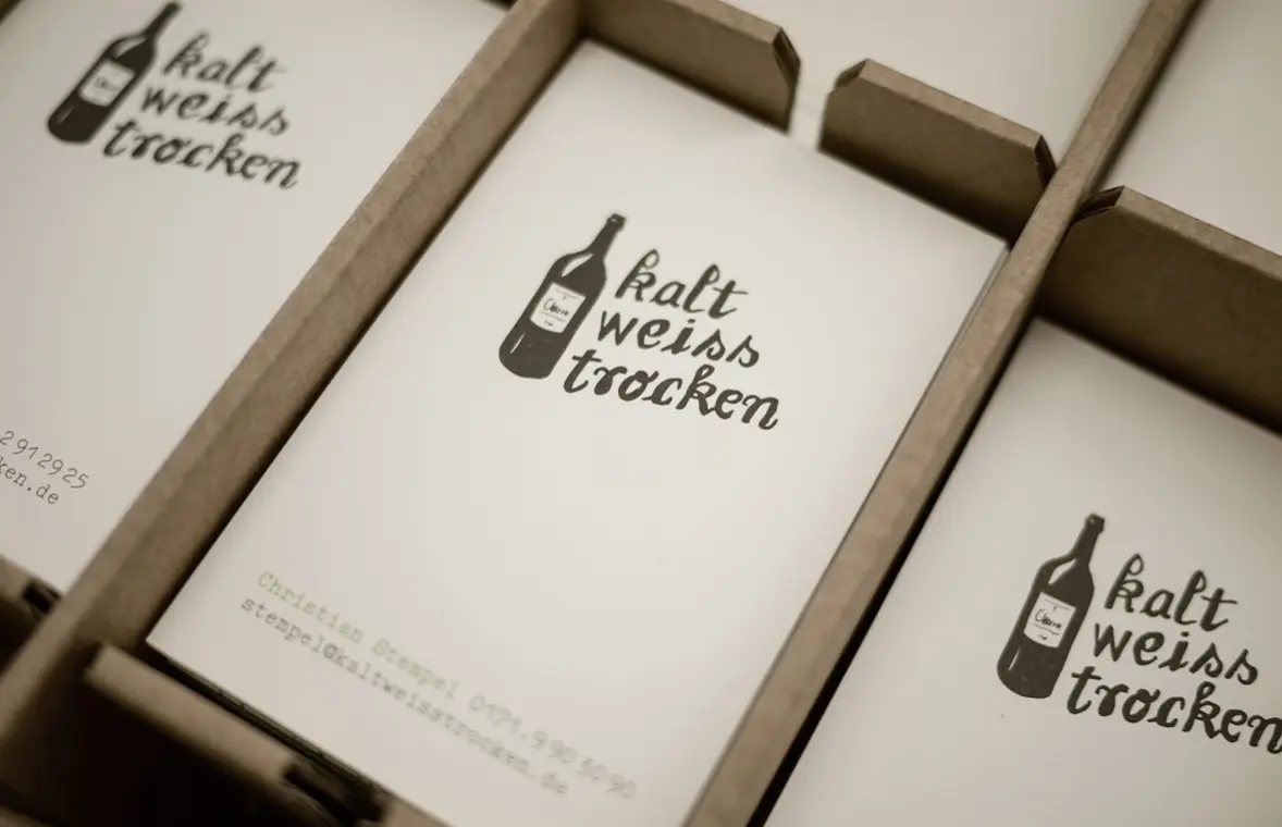 Ziel des Corporate Designs war es, für den Weinhandel Kalt.Weiss.Trocken eine kreativ erfrischende und anspruchsvolle Identität zu entwickeln, die sich auf sympathische Weise aus der Masse der Weinhändler absetzt.
