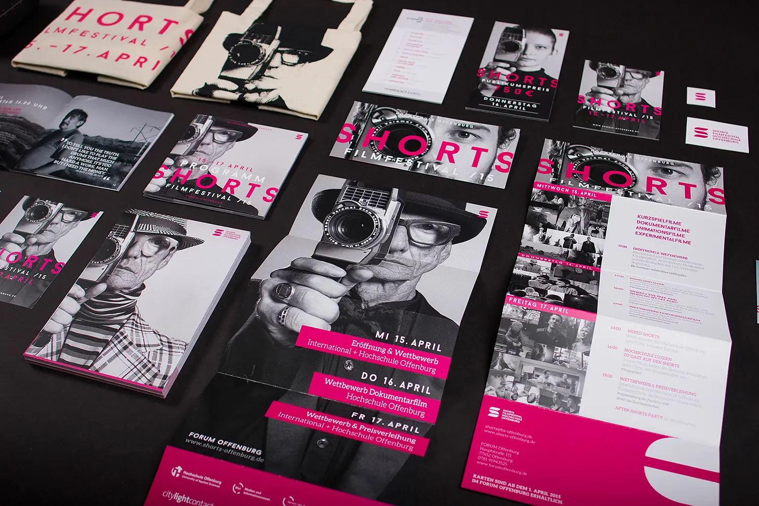 Für das internationale Filmfestival „Shorts“ in Offenburg sollte das visuelle Erscheinungsbild, sowie die neue Kampagne für 2015 entwickelt werden. Das Offenburger Festival für den studentischen Kurzfilm präsentiert jährlich Kurzfilme, Animationen, Kreativfilme und Dokumentationen.