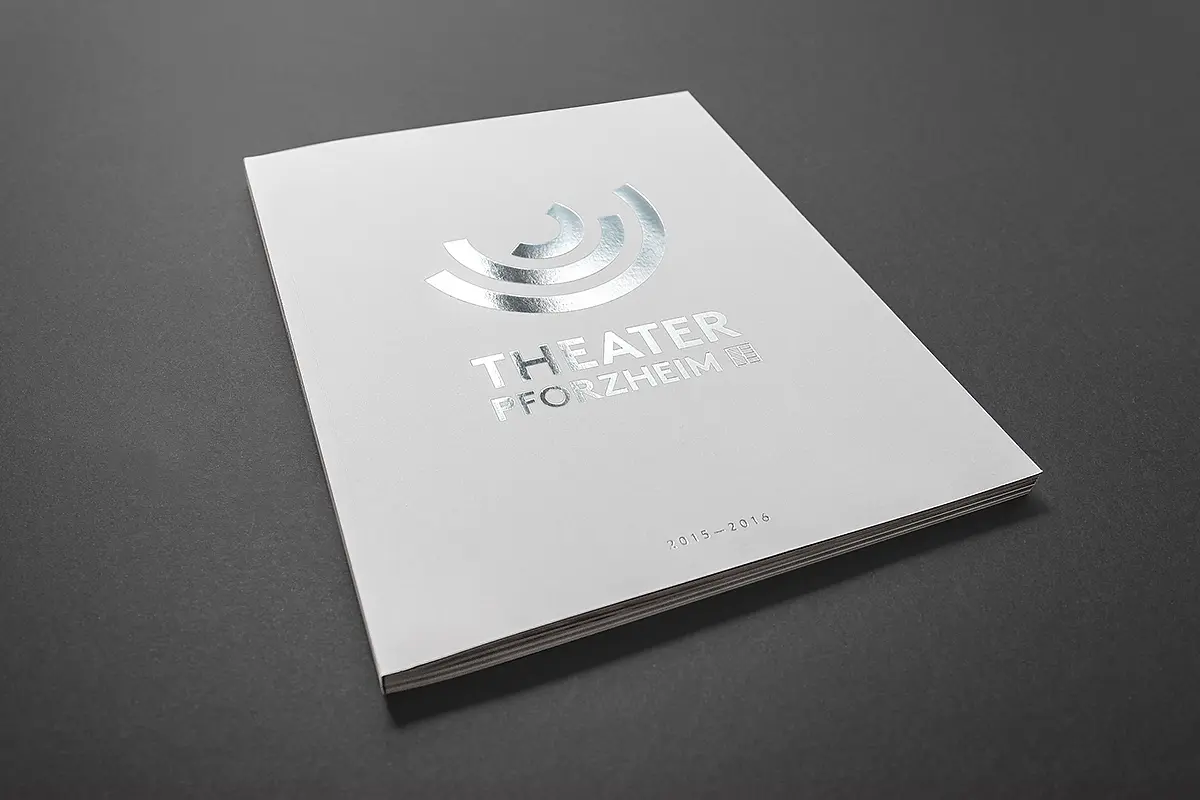 Die Aufbruchstimmung wird bereits durch das neue Spielzeitheft transportiert. Während das Cover bewusst noch ruhig daher kommt, um auch das Logo in seiner Klarheit zu präsentieren und es vor allem in den Köpfen zu etablieren, wird es nachher im Innenteil richtig bunt. Der Einsatz von Farbe unterstreicht damit intensiv die Vielfältigkeit und Verschiedenartigkeit des Theaters und seiner Besucher, folgt dabei aber einem klaren Farbsystem. Diese Vielfalt spiegelt sich wortwörtlich auch schon in der Silberfolienprägung wieder, die sich wie ein Chamäleon seiner Umgebungsfarbigkeit anpasst.