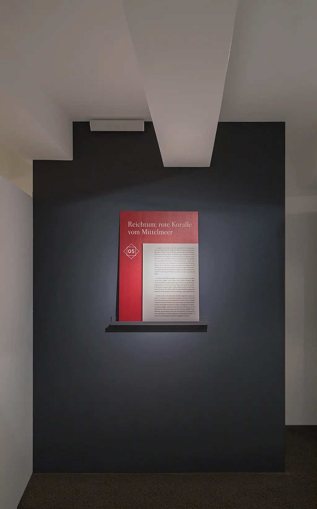 Vom 8. Mai – 1. November 2015 beleuchtet die Sonderausstellung im Museum Humpis-Quartier Ravensburg die ersten Jahrzehnte der Ravensburger Handelsgesellschaft in Barcelona und den Handel mit roter Koralle in ganz Europa. Hierzu gestalteten die drei Mediendesigner Simon Schaller, Niko Hornig und Daniel Hartmann die sieben Ausstellungsräume rund um internationale Gemälde und Exponate aus Museen und Sammlungen und inszenierten diese in großartigem, erfahrbarem Ausstellungsdesign.