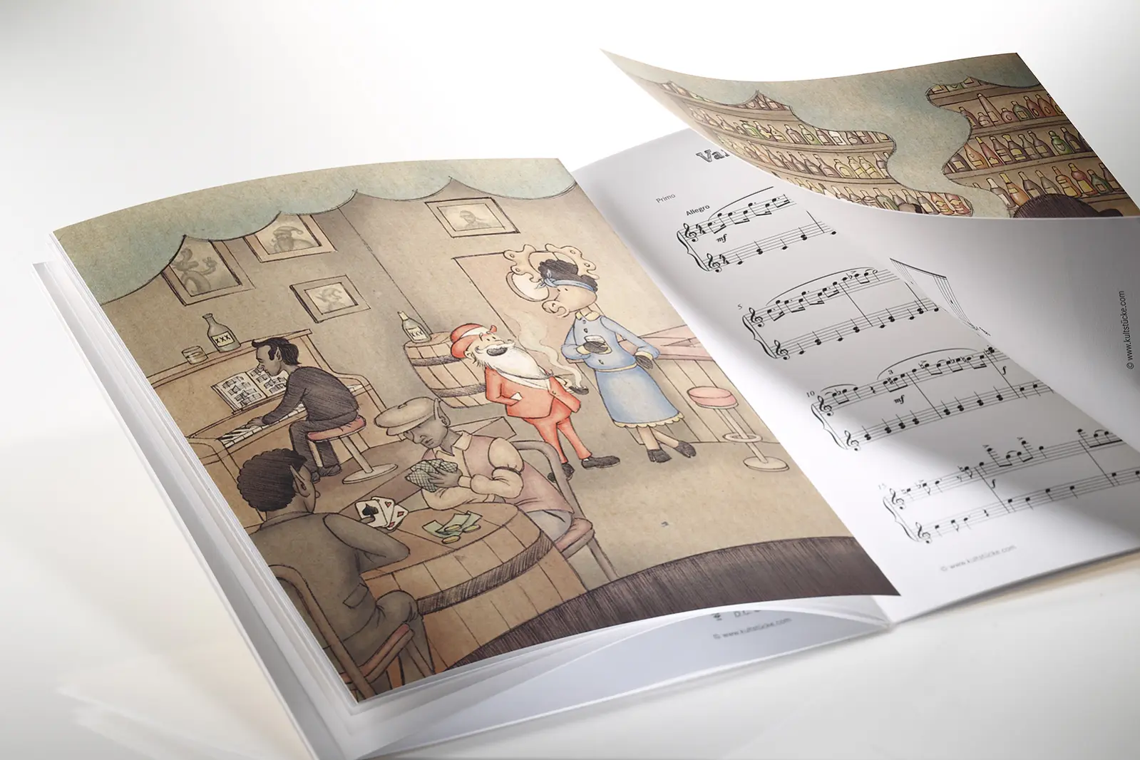 Die Seiten sind liebevoll mit Weihnachtsmann- und Elchmotiven illustriert. Anhand nur eines Liedes wurden alle Musikstile arrangiert, vorgestellt und illustriert: beispielsweise beim Rock ’n‘ Roll wird der Weihnachtsmann zum Elvis und der Elch tanzt im Pettycoat.