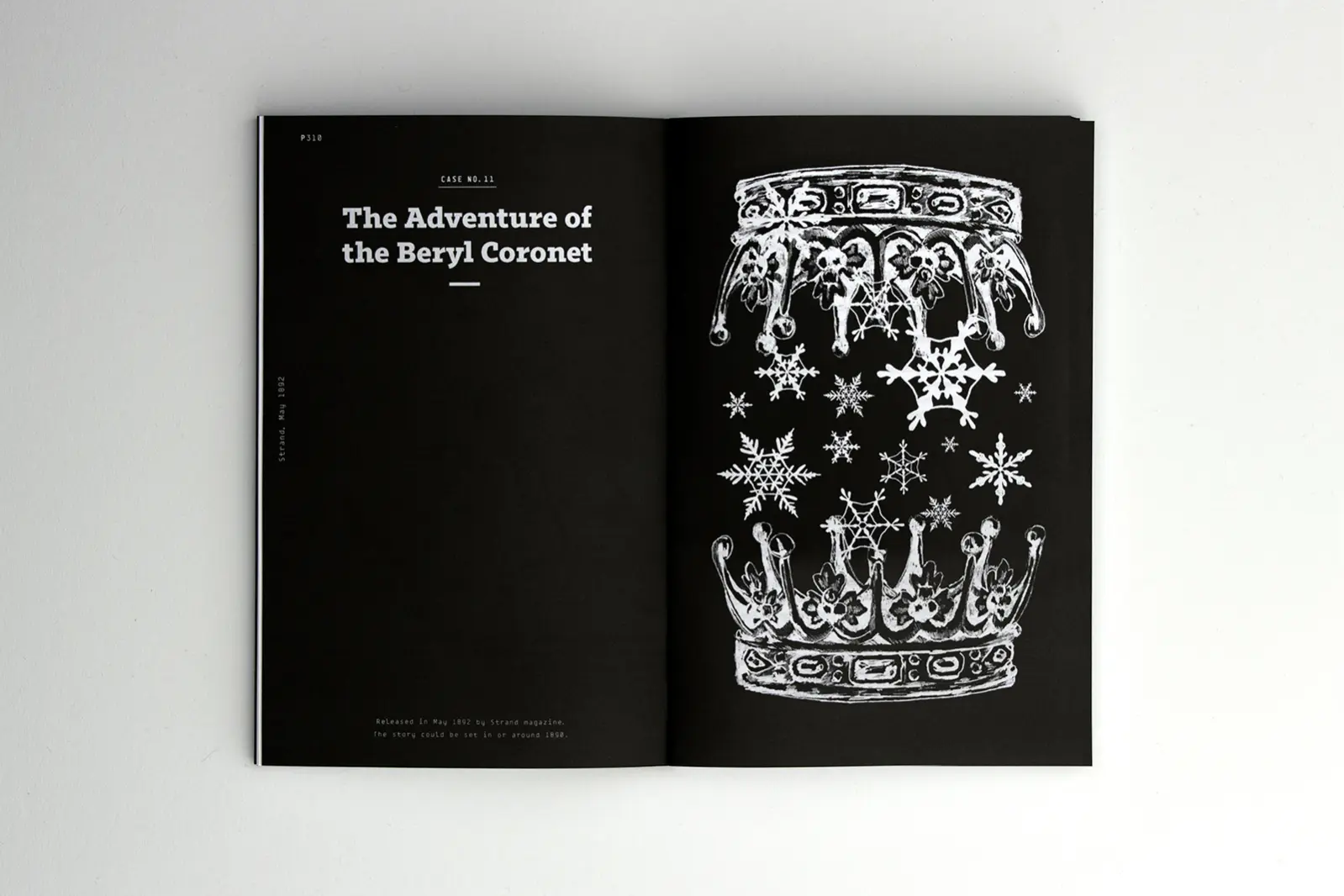 Sherlock Holmes – Short Stories ist ein freies Editorial- und Illustrationsprojekt über die ersten zwölf Sherlock Holmes Kurzgeschichten von Sir Arthur Conan Doyle. Das englischsprachige Buch umfasst 380 Seiten mit zwölf Illustrationen und 16 Zitaten über einen der populärsten Detektive der fiktiven Kriminalliteratur. Die Essenz seiner Arbeitsweise basiert auf der Methode der Deduktion, Observation und des klaren Menschenverstandes. Jene Schlichtheit der Methodik spiegelt sich auch in der Gestaltung wieder und arbeitet spielerisch mit dem Bruch zwischen Tradition und Moderne.