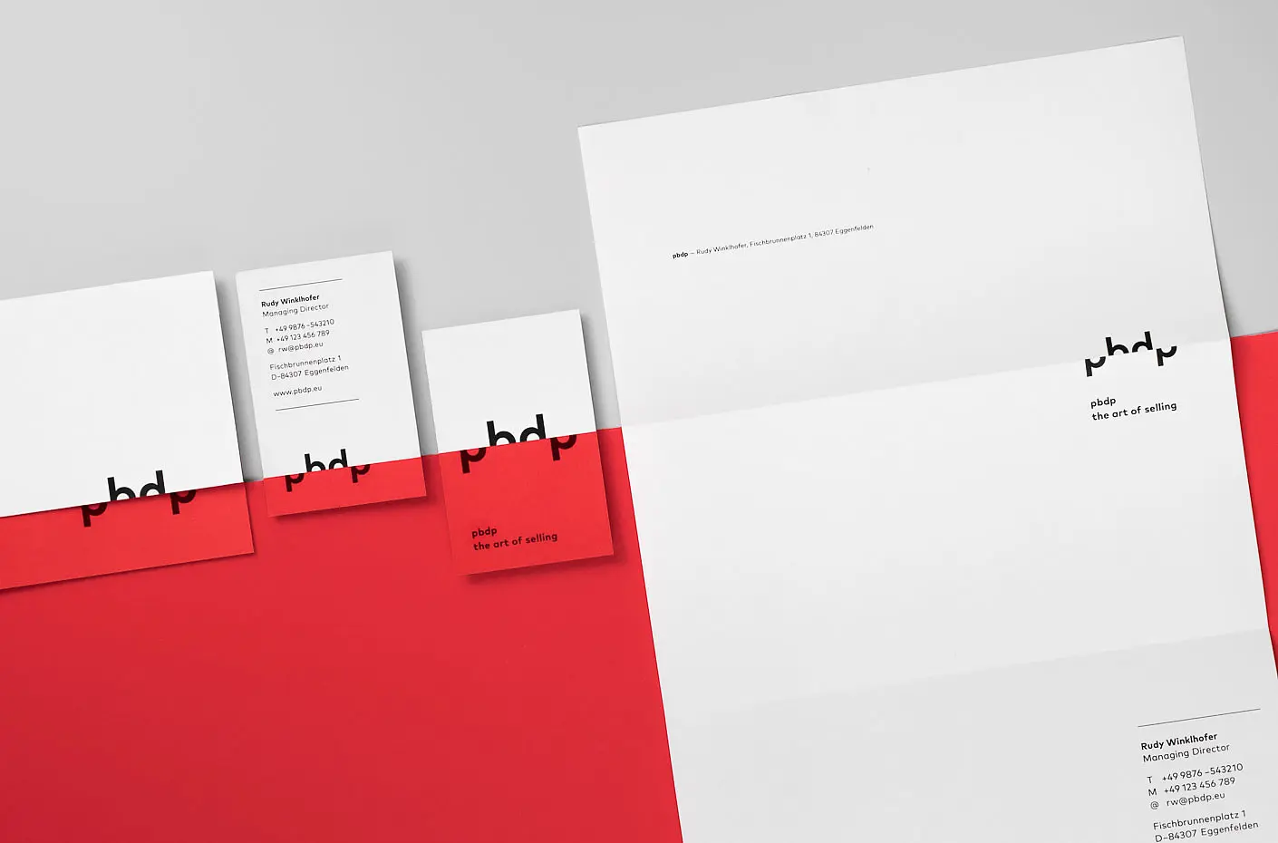 Gestaltung der Geschäftsausstattung für PBDP, eine Vertriebs-Outsourcing-Agentur mit Sitz in Eggenfelden / Niederbayern. Der Kernaspekt »successful selling has more levels« wird durch die Gestaltung unterschiedlicher Ebenen aufgegriffen.