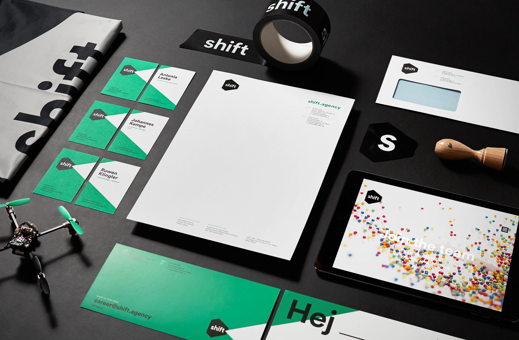 Genau so wie der Name der Agentur einen stets aktuellen Begriff neu belegt und mit Leben füllt, sollte auch das Erscheinungsbild einfach, aber unverwechselbar und ausdrucksstark werden. Eine markante, neu interpretiertes Sechseck-Form bildet als Bildmarke die Grundlage
