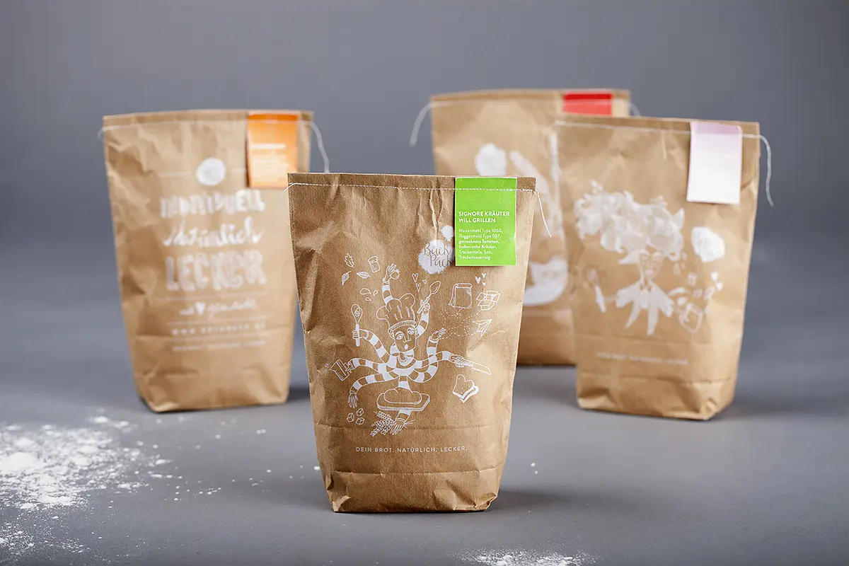 Konzeption & Gestaltung einer Marke zum Vertrieb individueller Backmischungen im Web. Mit Hilfe von BäckPäck können Kunden auf einem Webshop ganz einfach ihre individuellen Brotbackmischungen zusammenstellen und nach Hause liefern lassen. Dort müssen sie nur noch den Teig anrühren, das Brot backen und letztendlich genießen. Dabei steht der Genuss ohne schlechtes Gewissen im Vordergrund. Zutaten 100% ohne Zusätze und zum Großteil aus biologisch kontrolliertem Anbau.
