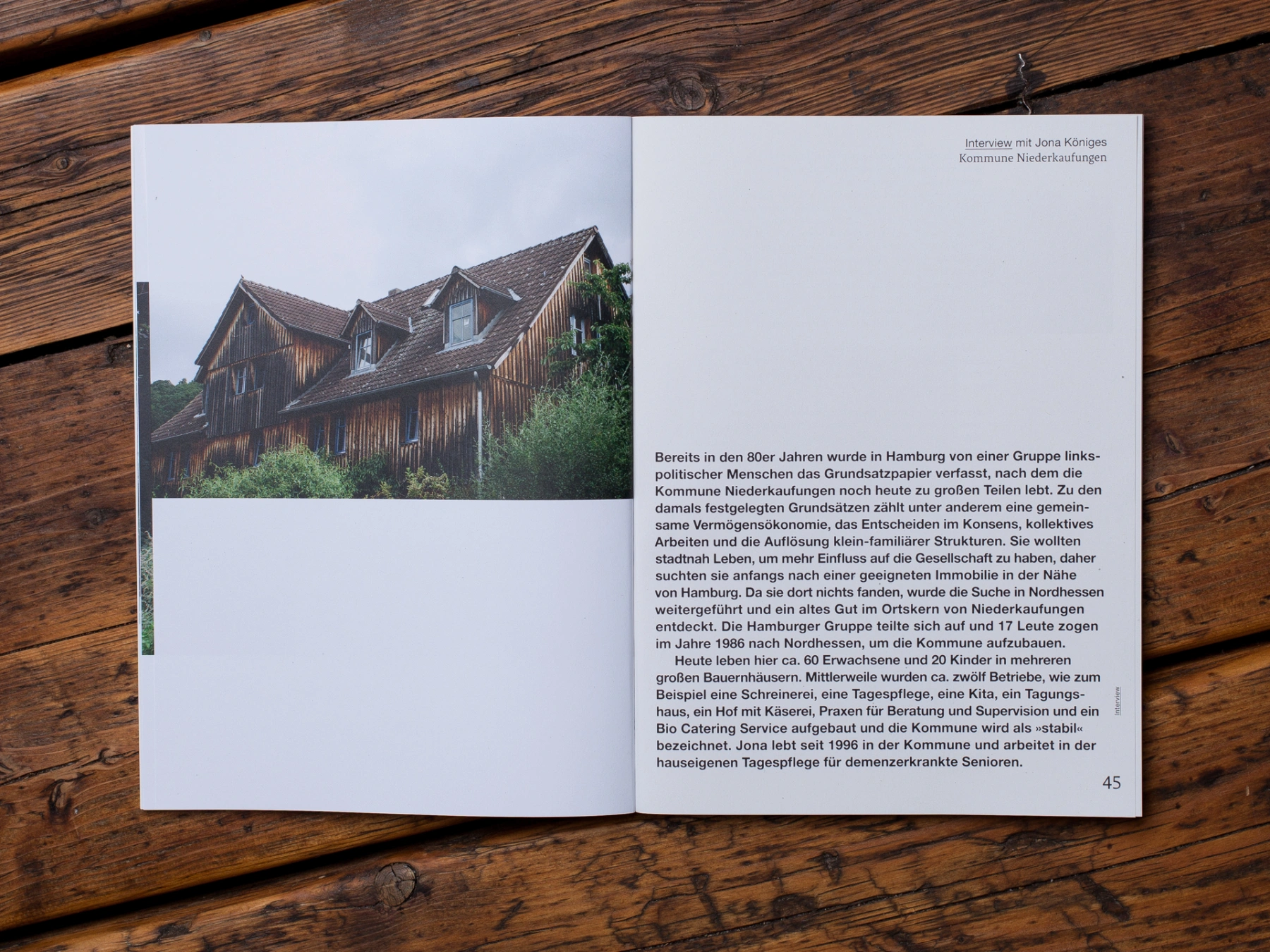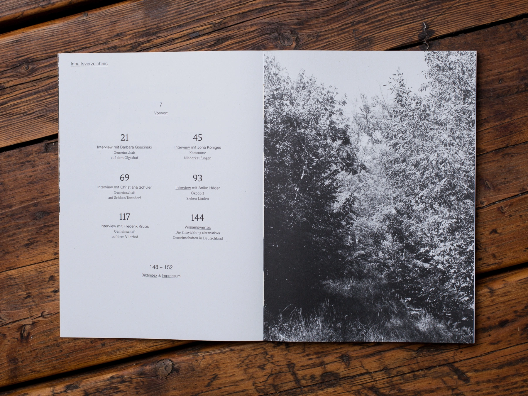 Um möglichst verschiedene Lebenskonzepte kennenzulernen, wählte ich fünf Gemeinschaften aus, die sich in ihrer Größe und ihrer ideellen Ausrichtung stark unterscheiden. Ich wollte mir zuallererst selbst ein Bild vom Gemeinschaftsleben machen, also bin ich im Sommer letzten Jahres losgefahren und habe es mir für jeweils eine Woche persönlich angesehen. Vor Ort versuchte ich möglichst viele Aspekte des gemeinschaftlichen Lebens kennenzulernen.