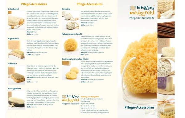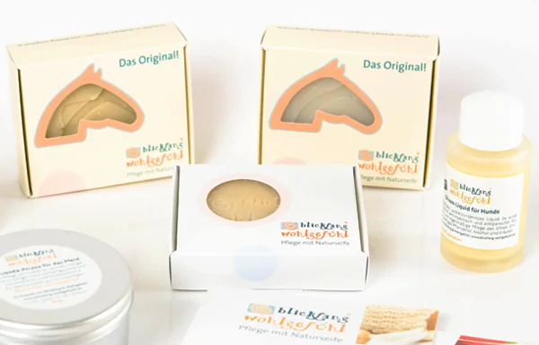 Das Leben der Inhaberin von Blickfang und Wohlgefühl® ist geprägt von der engen Verbundenheit zwischen Mensch, Tier und Natur. Die handgemachten Naturseifen spiegeln genau das wieder und haben obendrein noch eine heilungs-unterstützende sowie pflegende Wirkung. In diesem Projekt entstanden neben Logo, diversen Produktflyern, Geschäftsausstattung und Online-Shop, auch produktbezogene Verpackungslösungen sowie Autobeschriftung und Messedesign – die unterschiedlichsten Anzeigen nicht zu vergessen.