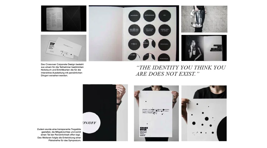 Mit dem Symposium „Crossover – Identität im Mainstream“ soll ein Ort des Austausches (in Form von Vorträgen, Diskussionen,…) geschaffen werden, der zum Einen über das Thema der Identität in der postmodernen Gesellschaft informiert, einlädt darüber zu diskutieren und selbst Teil des Ganzen zu werden (interaktive Ausstellung; diese hält den derzeitigen Zustand der Identitäten der Teilnehmergruppe flüchtig fest. Jeder wird dadurch zum Produkt bzw. zu einer Oberfläche für die Betrachter, an der sie sich orientieren, sich identifizieren oder über die sie urteilen können).
