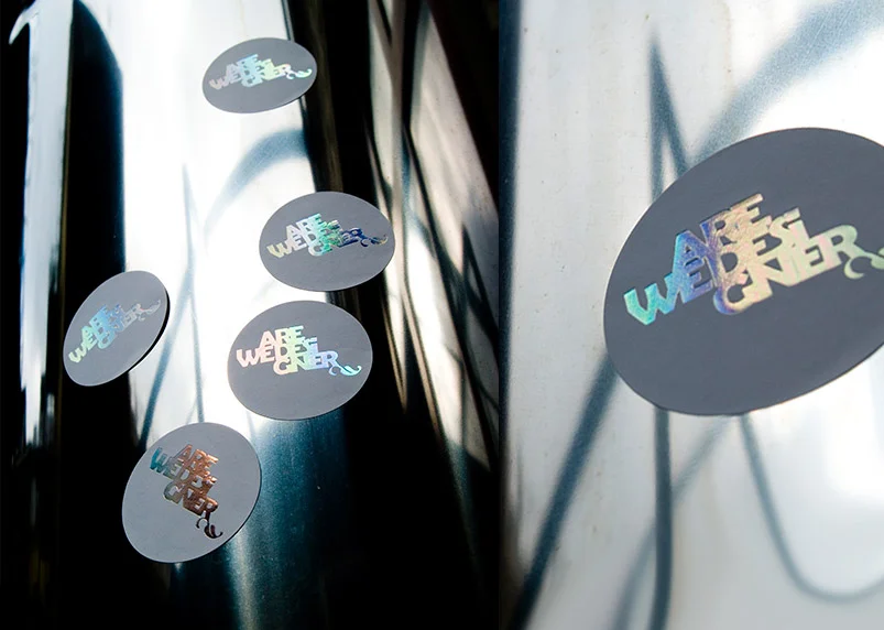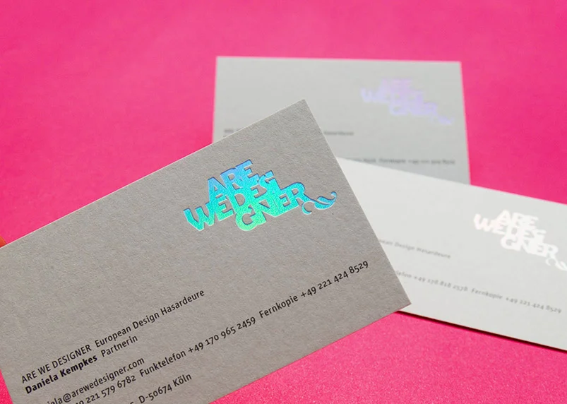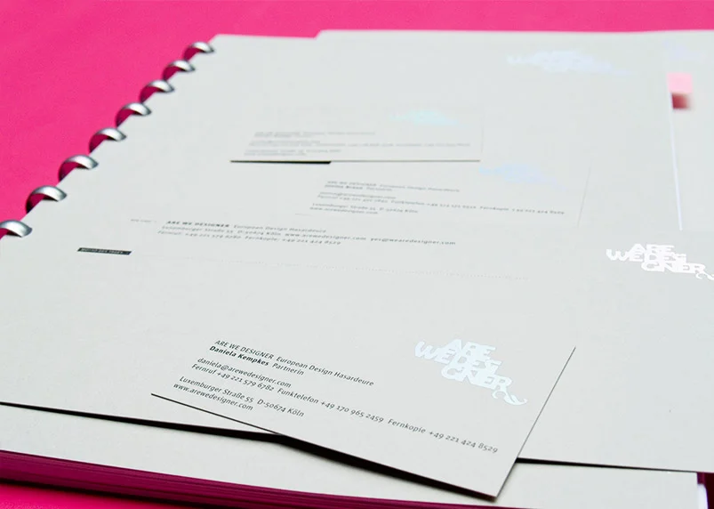 Gestaltung unserer eigenen Geschäftspapiere: Logo, Briefpapier, Visitenkarten, Grußkarte und Aufkleber.