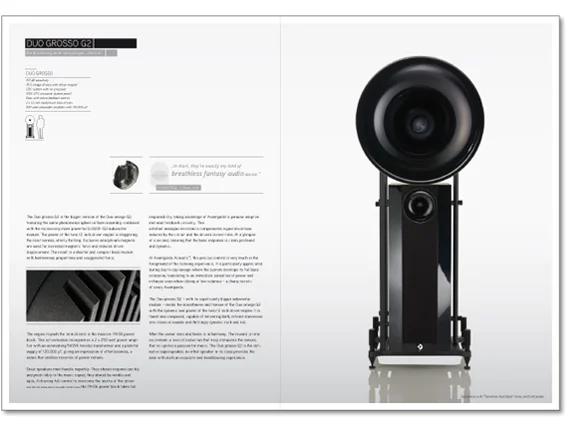 Avantgarde Acoustic ist der weltweit bedeutendste Hersteller von Hornlautsprechern. Ziel des Gestaltungsauftrags war es, ein Corporate Design und eine langfristige kommunikative Leitidee für die Marke zu entwickeln, die das individuell Andere dieser Marke treffsicher transportiert. Die entwickelte Leitidee “Purity meets Performance” tut genau das. Sie erzählt nicht von der Wirkung der Lautsprecher, sondern die Entstehungsgeschichte von Avantgarde Acoustic. Textlich und visuell stellt sie das Markenerlebnis als Schnittmengenprodukt dar, das sich aus der einzigartigen Reinheit und Leistungskraft der Marke ergibt. Eine emotionale Fusion mit einem hochrationalen Kern.