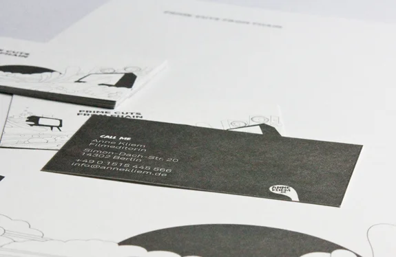 Bewegung ins Standbild bringen – das war unsere Idee für die Friedrichshainer Filmeditorin von Prime Cuts. Wir haben das Erscheinungsbild für ihr Geschäftspapier und die Visitenkarte im Comic-Stil illustriert, um damit die Dynamik und Vielseitigkeit der Bilderflut zu visualisieren, die sie jeden Tag kombiniert und editiert.