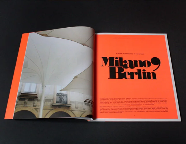 Konzeption und Gestaltung der Imagebroschüre für MDT-tex. MDT-tex konstruiert und fertigt besonders innovative, hochwertige Sonnenschutzsysteme und textile Outdoor-Architektur.