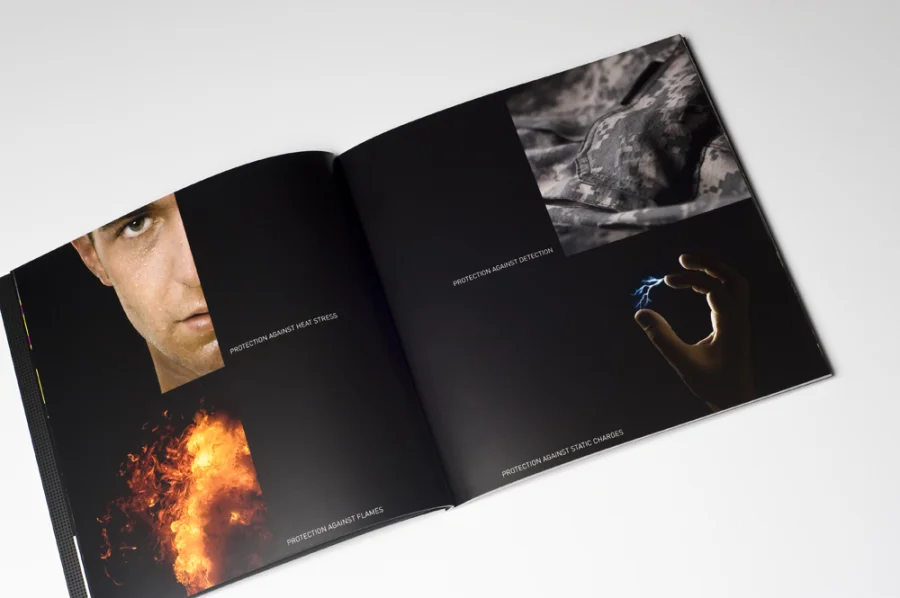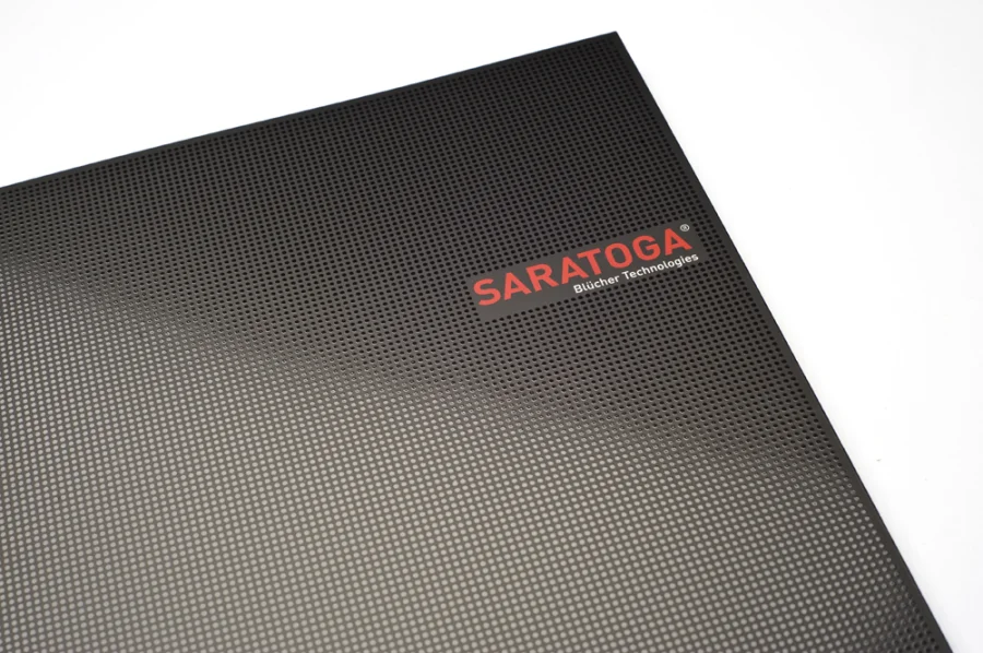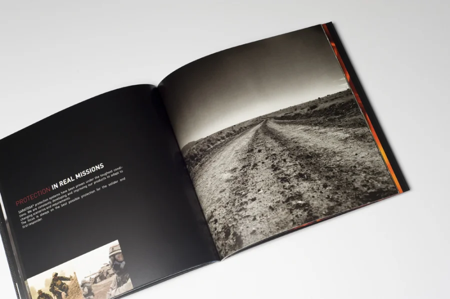 Als Bestandteil des von uns entwickelten Corporate Designs für die Marke SARATOGA entstand im Frühjahr 2010 die Imagebroschüre im Auftrag der BLÜCHER GROUP, weltweiter Marktführer für ABC-Schutzanzüge.