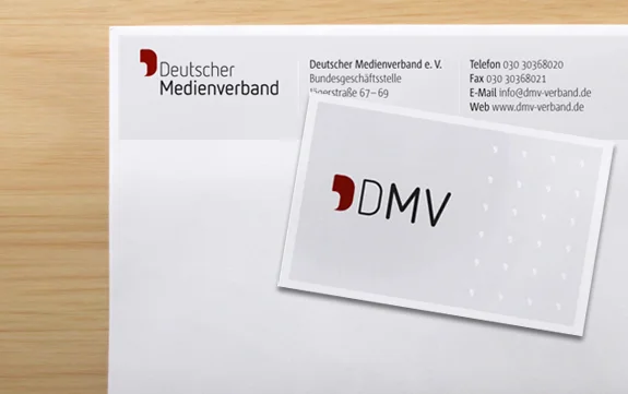 Der Deutsche Medienverband (DMV) vertritt als Journalisten-Bundesverband die Interessen von über 5.000 Mitgliedern. Nach der Umbenennung von Junge Medien e. V. zu Deutscher Medienverband e. V. im Jahr 2009 galt es auch den Auftritt erwachsener zu gestalten. Ich entwickelte die Wort-Bildmarke und die Geschäftsausstattung.
