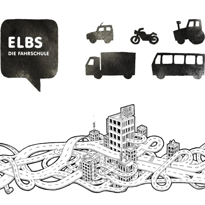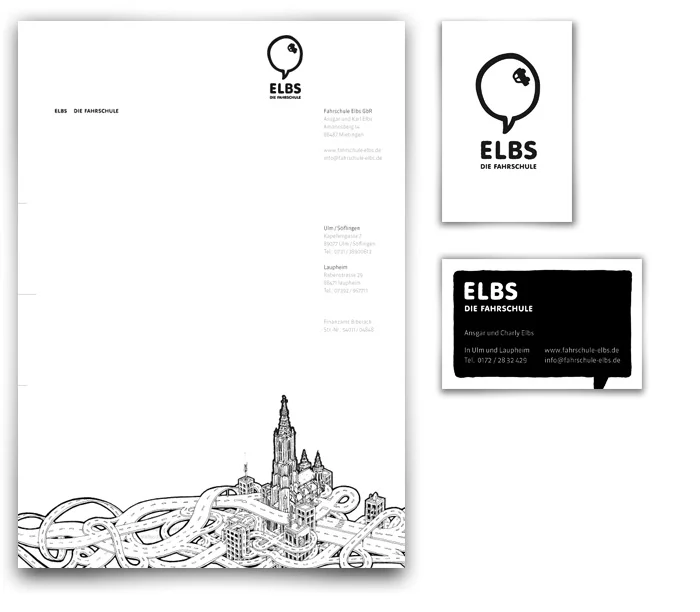 Die umfassende Entwicklung des Erscheinungsbildes für die Fahrschule Elbs.