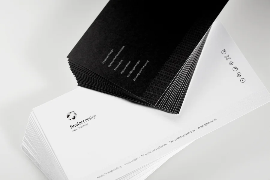 Das Corporate Design verwendet lediglich Schwarz und Weiß, um reduziert und prägnant zu sein. Nichtsdestotrotz werden durch die gelaserte Bildmarke verschiedene Farben und Strukturen integriert, die unsere Vielfältigkeit visualisieren. Kunden und Freunde spielen mit unserer Geschäftsausstattung und testen verschiedene Hintergründe und Positionen, um spannende Kombinationen zu kreieren.
