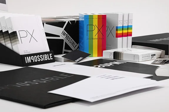 Wie sieht die Wiedergeburt einer alten Marke aus? Mit neuem Namen, neuer Mission, neuen Produkten und einer alten Geschichte? Das Corporate Design folgt dem Grundgedanken: So wenig wie möglich gestalten. Die Anmutung sollte ultra-analog sein. Der Widerspruch, der schon im Namen IMPOSSIBLE steckt, wurde typographisch sichtbar gemacht durch ein gespiegeltes P – es betont das Gegenteil „possible“. Zugleich ist die seitenverkehrte Darstellung typisch für die Fotografie. Das akzentuierte P steht auch für die Marke Polaroid, ohne die es IMPOSSIBLE nicht gäbe.