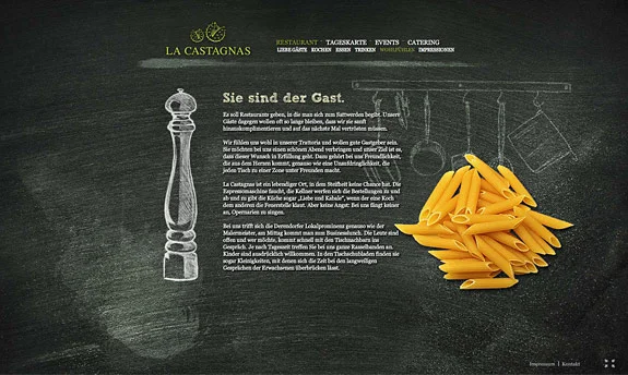 La Castagnas ist unser Lieblingsitaliener. Darum war es uns eine besondere Freude, eine schöne Website zu gestalten. Wir haben Flash eingesetzt, weil es uns schöne Effekte möglich macht und es bei einem Restaurant immer auch ein bißchen um Show geht. Dahinter liegt ein Content-Managament-System, womit Koch und Geschäftsführer die Tageskarte selbst aktualisieren oder den Eventkalender füllen. Dazu haben wir auch gleich das Corporate Design ein bißchen aufgefrischt.