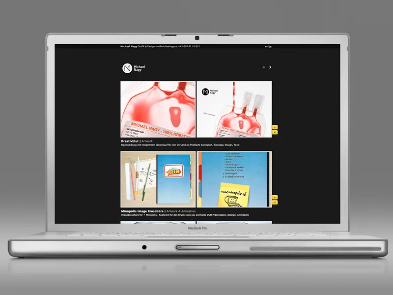 Das Tag/Nacht Thema der Website (Die Website wechselt automatisch zwischen Tag und Nacht, je nach Uhrzeit) zieht sich durch das gesamte Design hindurch.