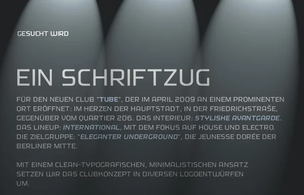 Typografisches Logokonzept für TUBE, einem House/Electro-Club in Berlin.