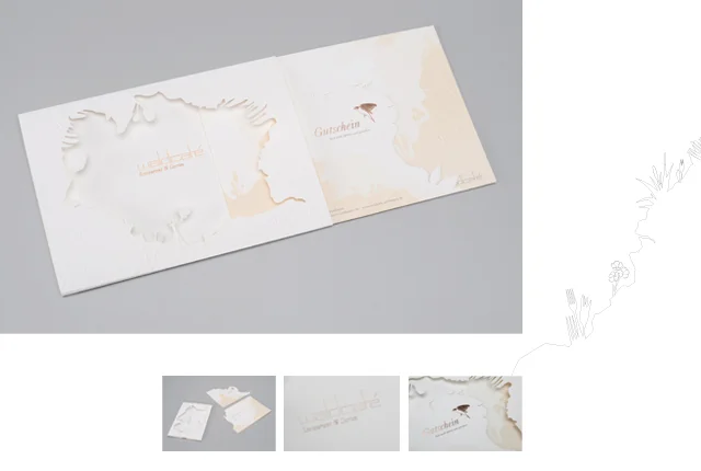 Bestandteile des Corporate Designs sind neben der Typografie die detaillierten Illustrationen im Stil alter Bestimmungsbücher und ein fotografisches Konzept, welches die Flora und Fauna der direkten Umgebung abbildet. Ein weiteres Stilelement findet sich in den morphologischen Transformationsreihen von Elementen aus dem Café zu Motiven aus der Natur. Alle Applikationen zeichnen sich zudem durch eine hochwertige Veredelung, wie Blind- und Folienprägung, Laserstanzung oder besondere Papiere, aus.