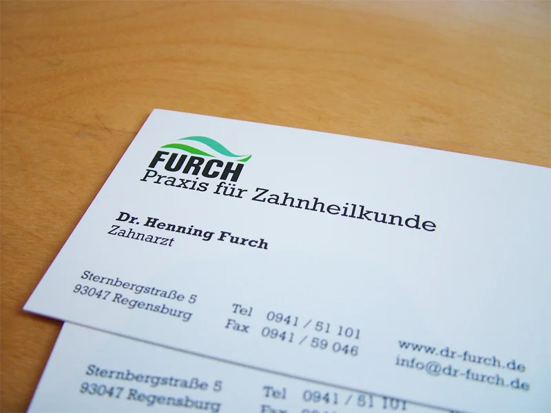 Logo und Geschäftsausstattung für den Zahnarzt Dr. Henning Furch, Regensburg ~ Logotype and stationery for dentist Dr. Henning Furch from Regensburg,