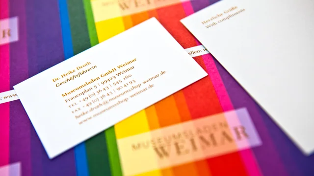 Wer Weimar besucht und als Erinnerung eine Goethe-Büste oder ein Bauhaus-Spiel erstehen möchte, besucht eine der fünf Filialen der Museumsläden der Klassik Stiftung Weimar, für die KONO das Corporate Design entwickelte. Das prägnante Farbspektrum leitet sich aus den Farbkreisen von Goethe und Itten ab und vereint damit die Weimarer Klassik mit der Weimarer Moderne – wie dies auch das Sortiment der Museumsläden tut.
