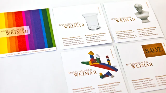 Erscheinungsbild in Anlehnung an das Design der Klassik Stiftung Weimar mit Schriftzug, Geschäftsausstattung, Werbekarten, Werbemitteln, Plakaten, Tragetaschen, Kundenstopper und Online-Shop.