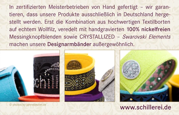 Das Lable schillerei® steht für nachhaltig produziertes Design “Made in Germany”, denn alle Produkte werden ausschließlich in Deutschland gefertigt. Unsere Aufgabe bestand darin sowohl den Firmennamen als auch ein passendens Logo zu entwickeln. Neben der Geschäftsausstattung und verschiedenen Anzeigen entwarfen wir Infoflyer, Ausstellungseinladungen sowie das gesamte Verpackungsmaterial. Zudem konzepierten wir die Website inklusive Onlineshop und das Erscheinungsbild für Fachmessen.