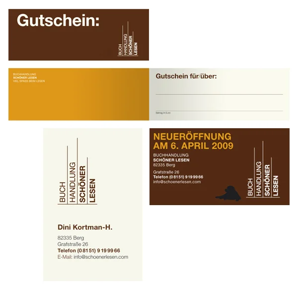 Entwicklung eines Erscheinungsbildes für die Buchhandlung Schöner Lesen in Berg am Starnberger See.