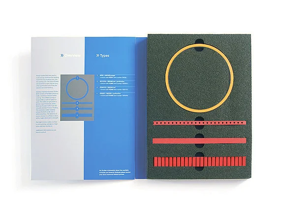 Produktmusterbox für die Präsentation systemkritischer Komponenten – Transport- und Antriebsbänder. Der niederländische Hersteller Ammeraal Beltech B.V. vermarktet diese Special-Interest-Produkte weltweit in 147 Ländern. Der Einsatz dieses hochwertigen, vertriebsunterstützenden Tools erleichtert dem Kunden die Wahl des benötigten Produkts erheblich und markiert den Premiumanspruch des Herstellers.