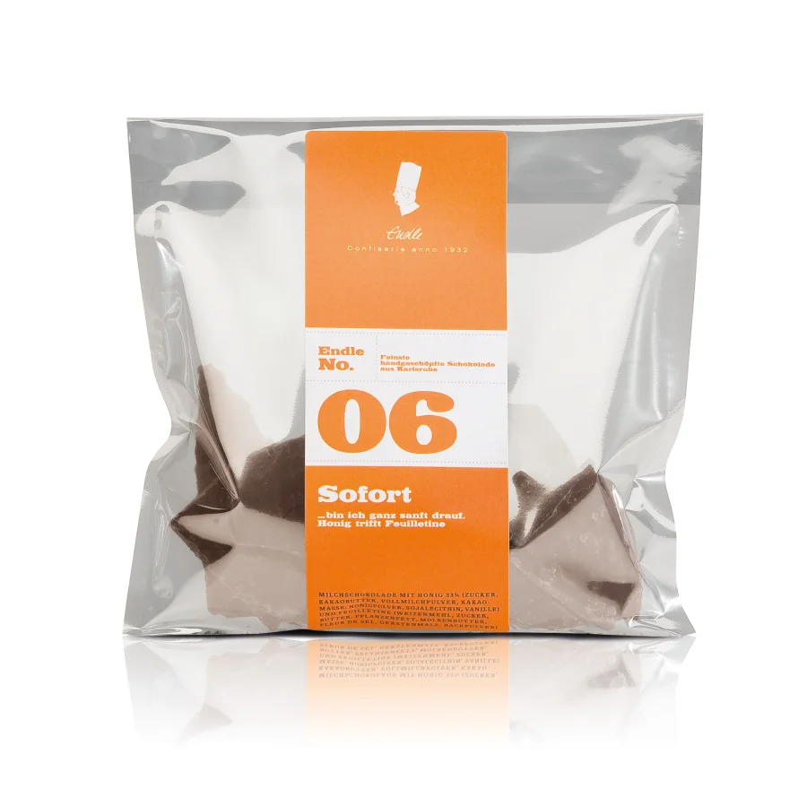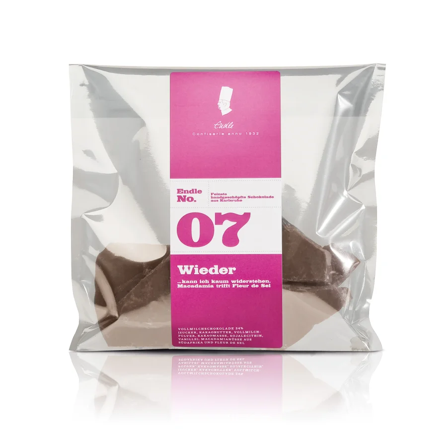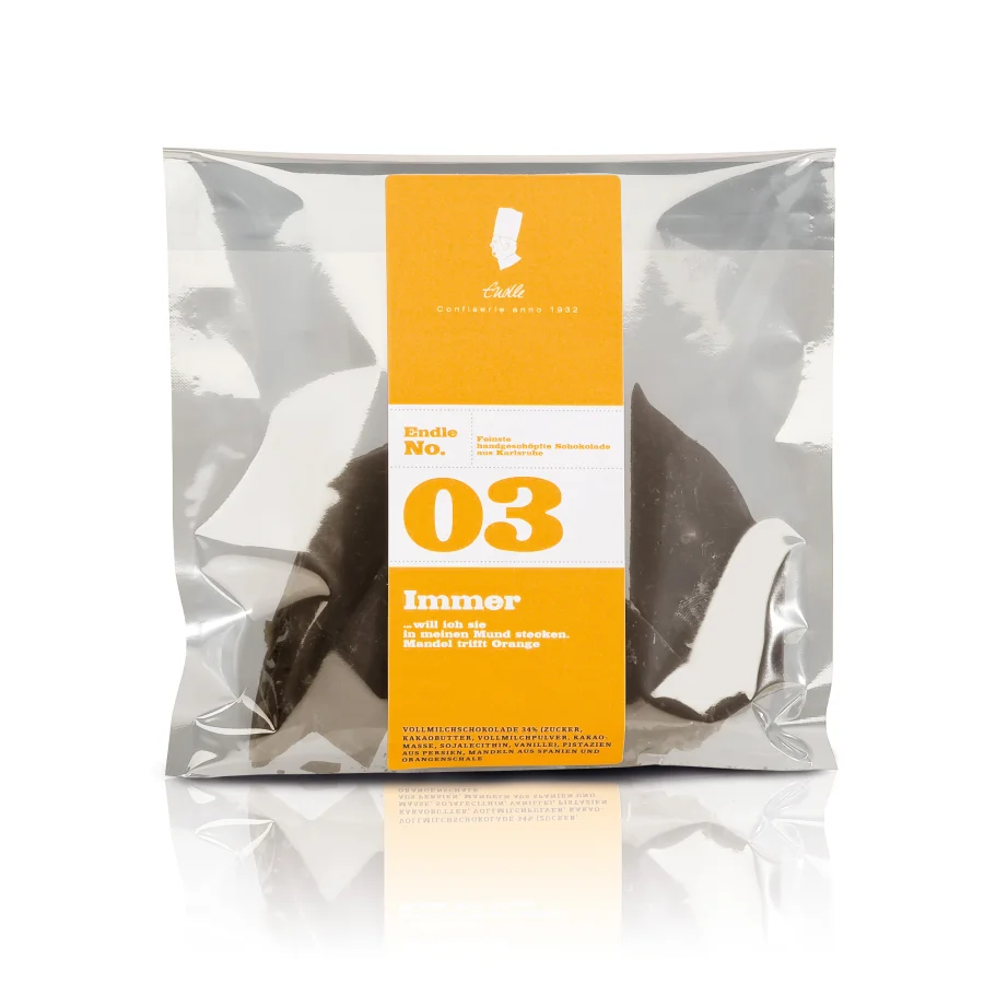 9 gute Gründe in der Confiserie Endle nicht mehr nein sagen zu können: „Oft“, „Gerne“, „Endlich“, „Sofort“, „Wieder“. Es galt, sprechende Namen für köstliche Schokoladenkreationen zu finden, das Ganze modern zu verpacken und in Genuss versprechenden Farben zu etikettieren. Eine köstliche Gesamtkomposition mit Anspruch auf Geschmack.