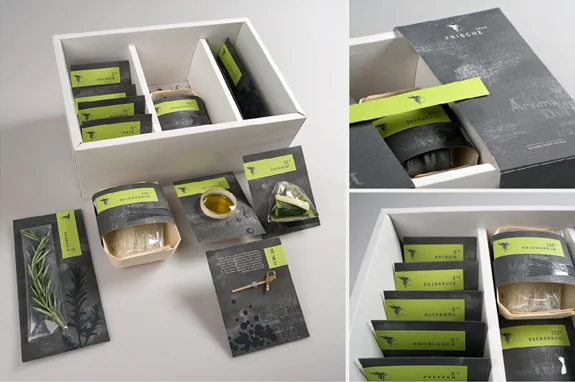 Auf einer Webseite wählt der Kunde ein Gericht aus und die Zutaten, inklusive Kochanleitung, kommen frisch und grammgenau verpackt zu ihm nach Hause.