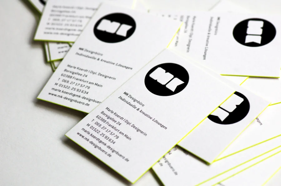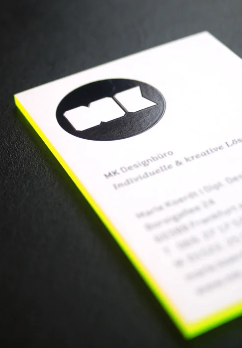 Visitenkarte mit Heißfolienreliefprägung und neongelben Farbschnitt!