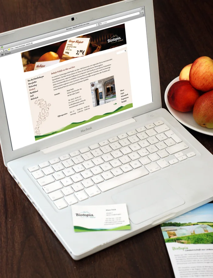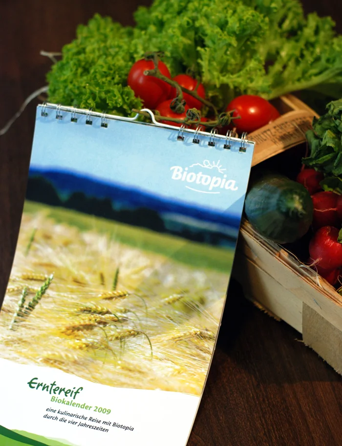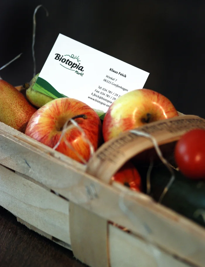In meiner Bachelorarbeit dreht sich alles um die Themen ökologische Landwirtschaft, gesunde Ernährung und nachhaltiges Kommunikationsdesign. Der Biohof Biotopia aus Greifenhagen ist dabei die Plattform für meine gestalterischen Umsetzungen. Biotopia ist mehr als nur ein Biohof, neben der Direktvermarktung über Marktstände, gehört eine Biokiste, ein Onlineshop, ein Feinkostladen und ein Bio-Café zu dem familiären Betrieb. Es entstand ein einheitlichen Erscheinungsbild, welches die verschiedenen Betriebssegmente vereint und den Nachhaltigkeitsaspekt in das C.I. transportiert. Die Arbeit umfasst die Erstellung des kompletten Bildmaterials, das Packaging und die Entwicklung der C.I. Elemente inkl. eigener Piktogrammfamilie. Das einbeziehen neuer Marketingwege runden die Arbeit ab.