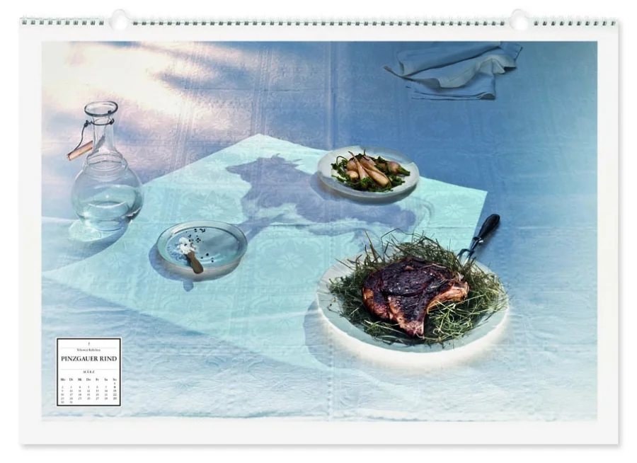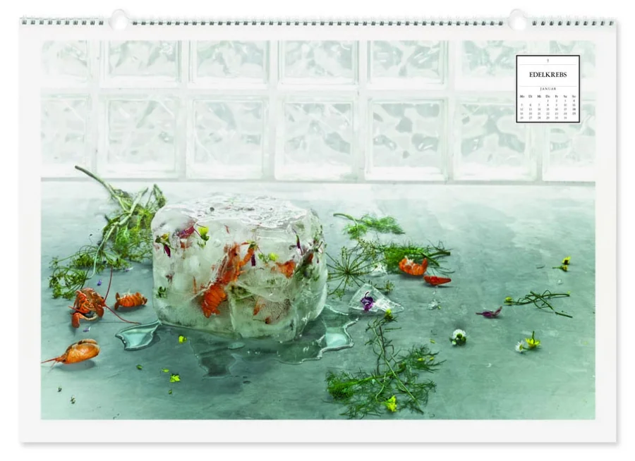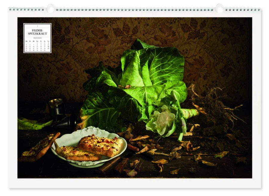 Thema des Kalenders „Der gute alte Geschmack“ sind Lebensmittel, Tiere und Pflanzen, die aus unterschiedlichen Gründen vom Aussterben bedroht sind. Inszeniert im Stil des Barock, bedienen sich die Motive der klassischen Vanitas-Symbolik – mit dem Ziel, an die Vergänglichkeit des Lebens und der irdischen Güter zu erinnern. So findet man in jedem Stilleben passende Vergänglichkeits-Symbole wie Seifenblasen, zerbrochenes Geschirr, Spiegel etc. Das Kalendarium ist gestalterisch an Todesanzeigen angelehnt, was die beabsichtigte Aussage zusätzlich unterstreicht.
