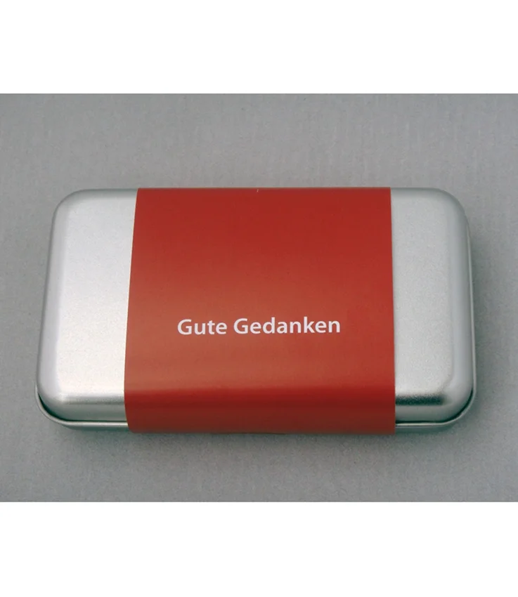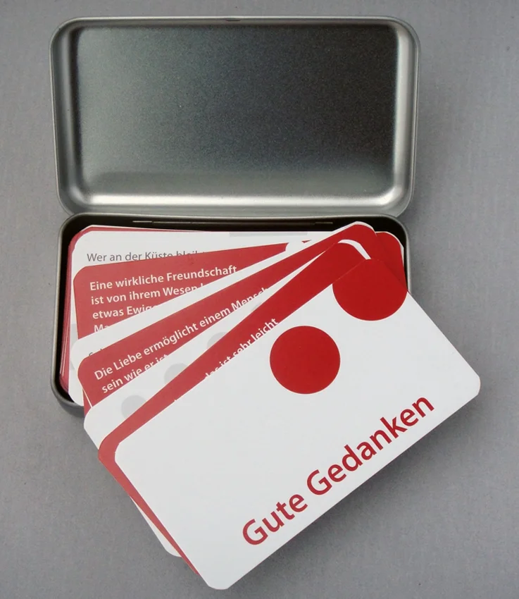 Edles Metallkästchen mit 52 Zitaten berühmter Persönlichkeiten in klarem Design.